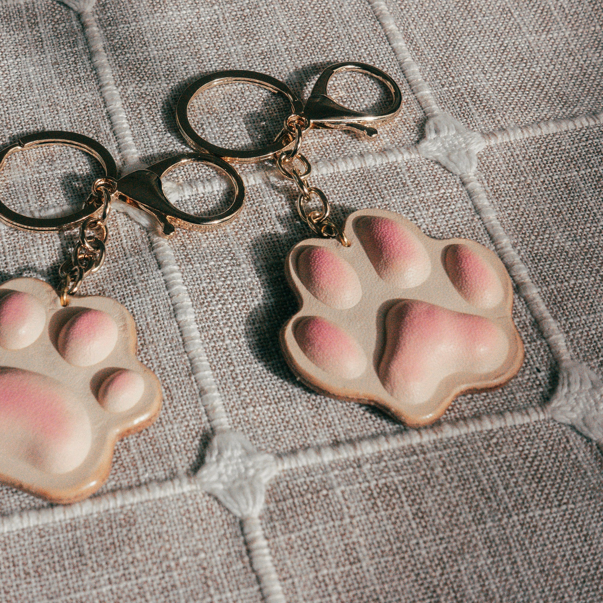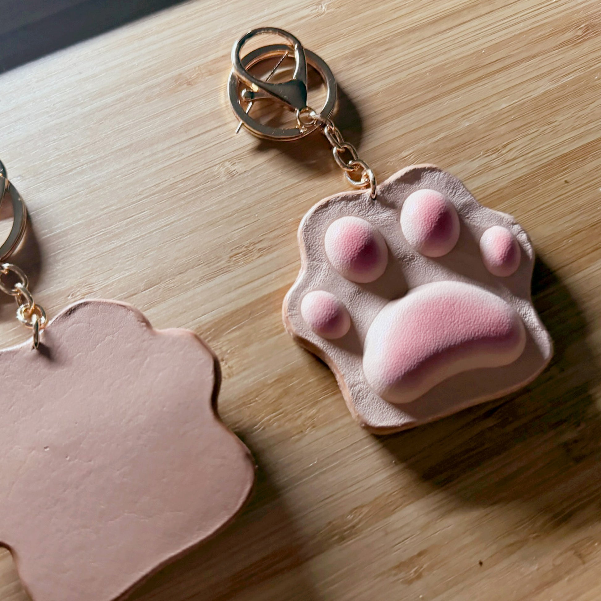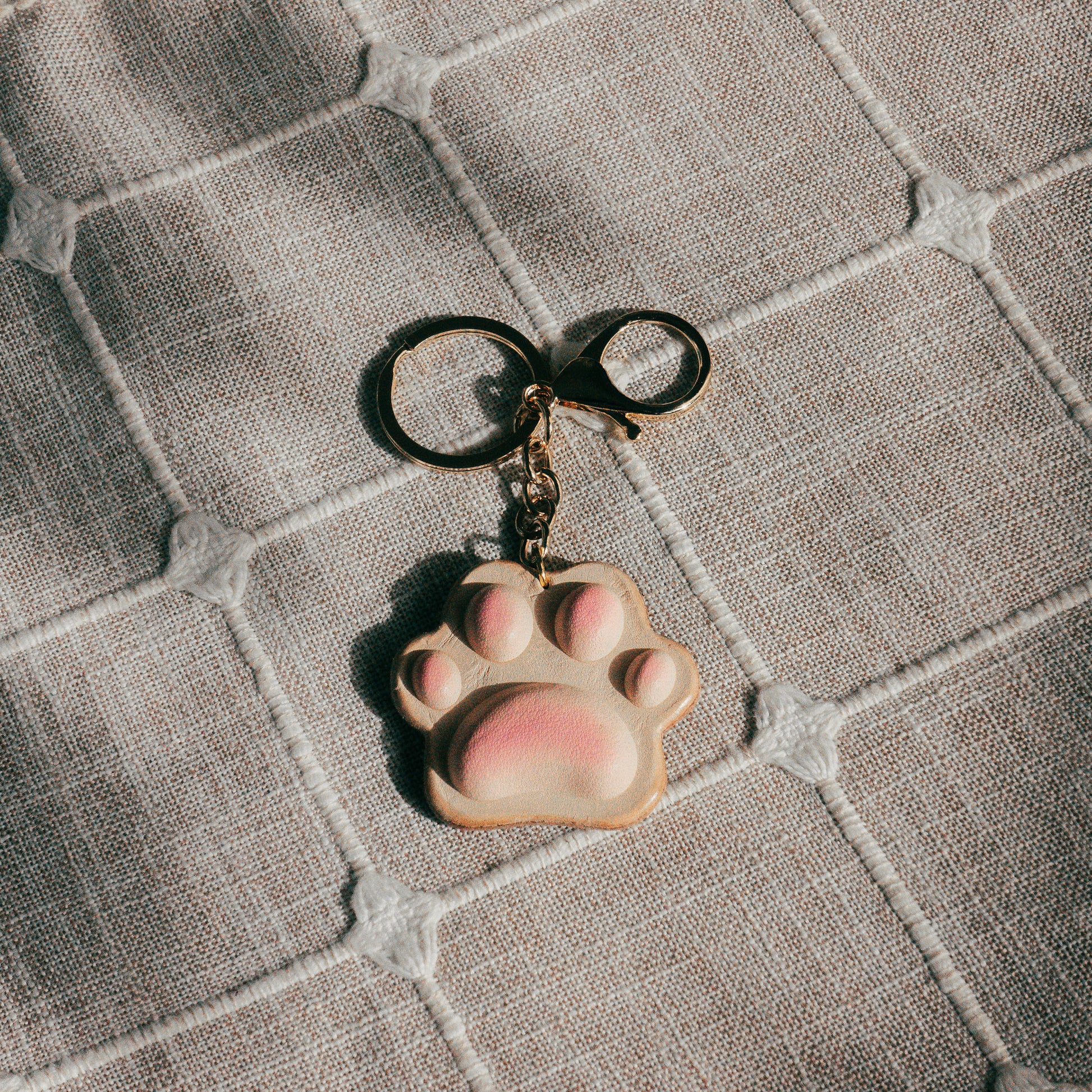 [All Change] Cat & Dog Paw Toastie - Handmade Genuine Leather Keychain